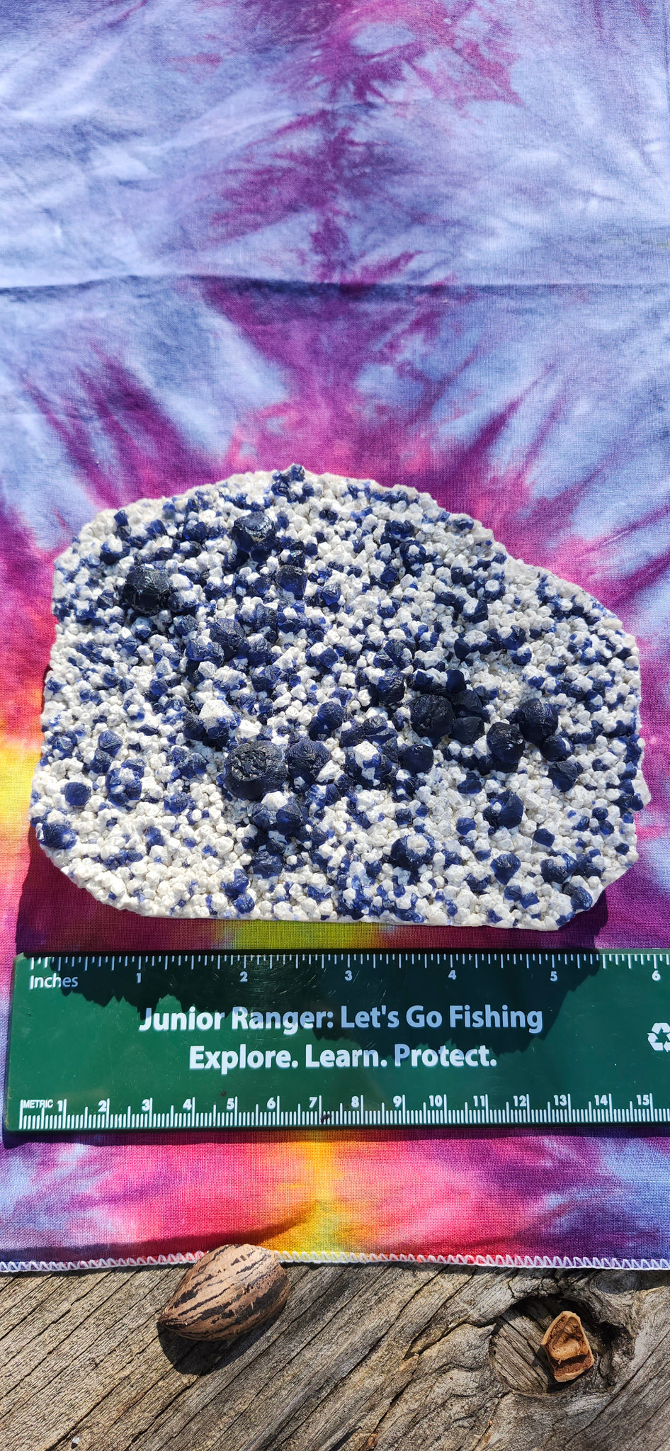 'Blueberry' fluorite on 'Snow' quartz matrix. This is a beautiful, well formed specimen is from China.