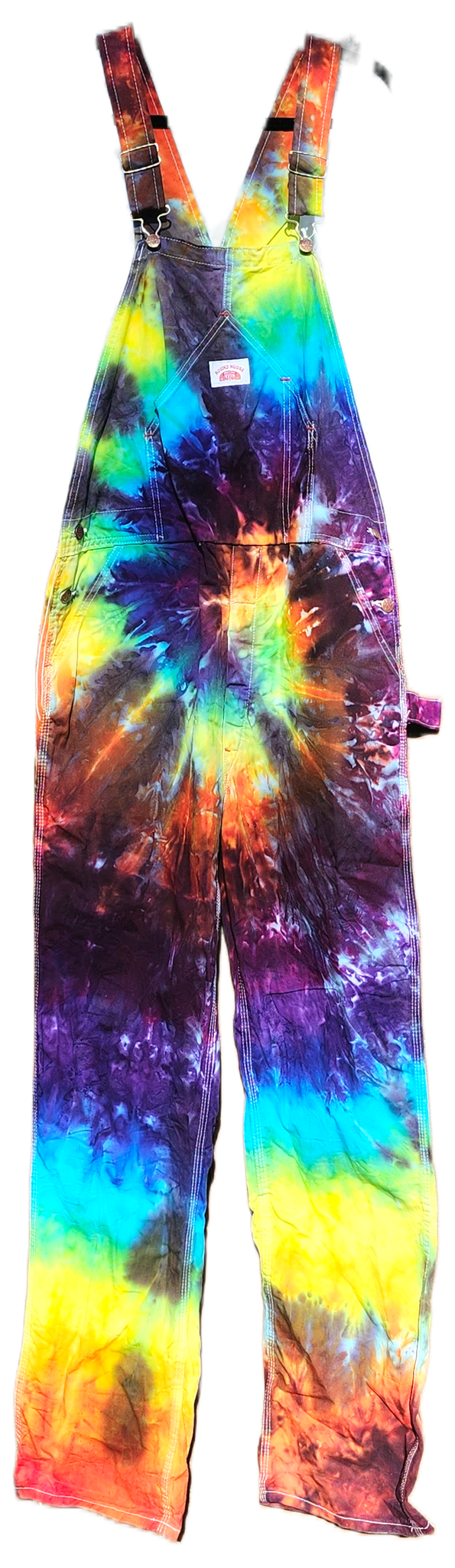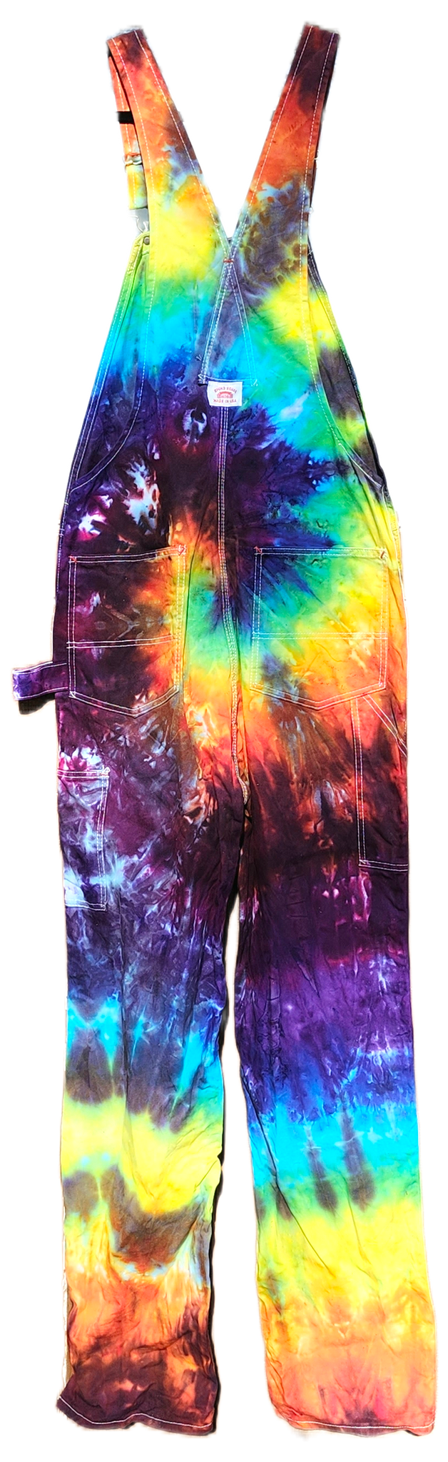 Round House brand, thick, durable, 100% cotton, painters style, bib overalls with adjustable shoulder straps and 8 pockets. Made in USA.